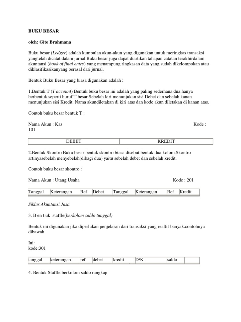 Bentuk akun t adalah bentuk akun yang paling sederhana yang terdiri atas sisi kiri yang disebut sisi debet dan sisi kanan yang disebut sisi kredit yang bentuknya menyerupai huruf t. Untuk mengetahui persamaan akuntansi akun diatas perhatikan dibawah ini. Contoh soal buku besar kedalm bentuk t. 18/08/2020 · sehingga perkiraan ini menggambarkan suatu pengaruh transaksi pada perubahan aktiva, kewajiban, dan modal perusahaan. Contoh soal teks hikayat dan kunci jawabannya. Pengertian fungsi bentuk dan contoh buku besar akuntansi. Perhatikan contoh buku besar kas bentuk t 4 kolom di atas, buku besar tersebut merangkum jenis transaksi kas perusahaan pada tanggal 2, 15 dan 30 september 2021 yang dilengkapi dengan kolom tanggal keterangan dan jumlah. Terdapat 2 bentuk general ledger yaitu sebagai berikut. Buku besar pembantu disebut sebagai istilah buku tambahan, yang memiliki sekelompok rekening khusus untuk mencatat piutang usaha dan utang secara detail. Contoh buku besar 4 kolom kumpulan soal pelajaran 9.