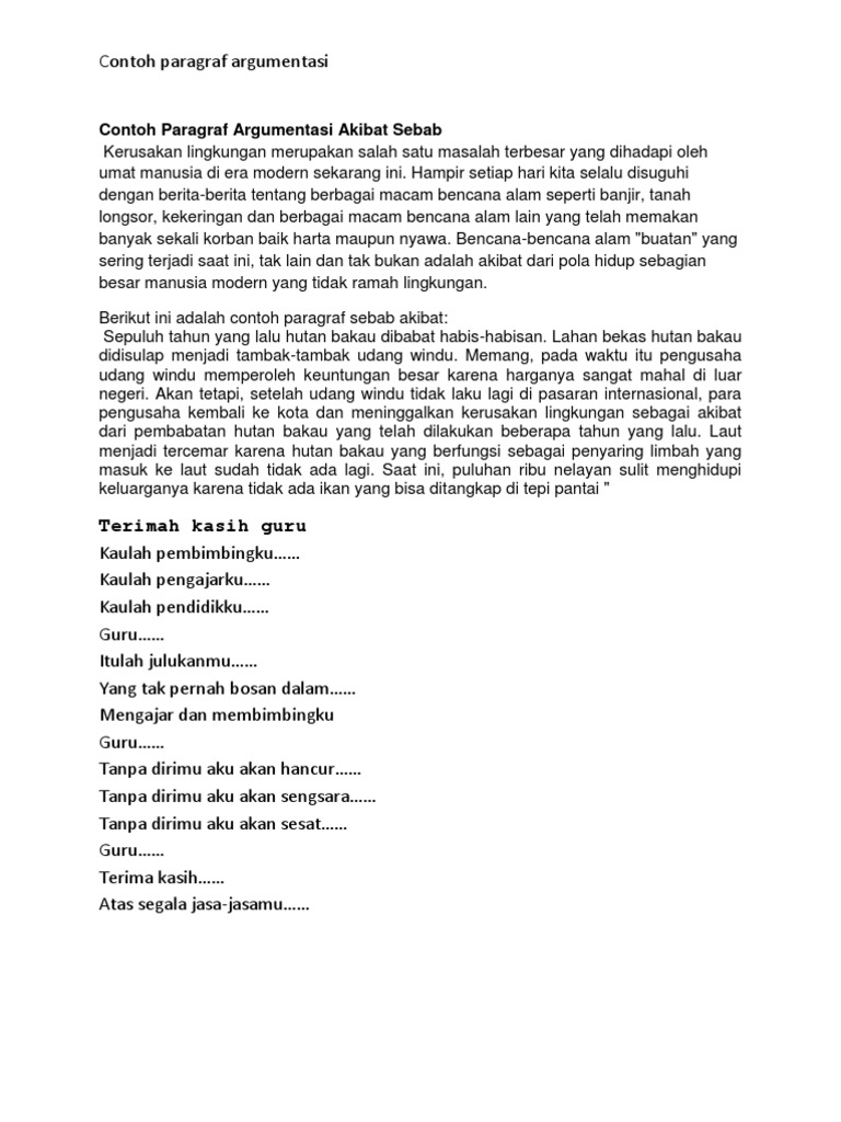 Contoh Paragraf Sebab Akibat Singkat Materi Siswa from materisiswadoc.blogspot.com