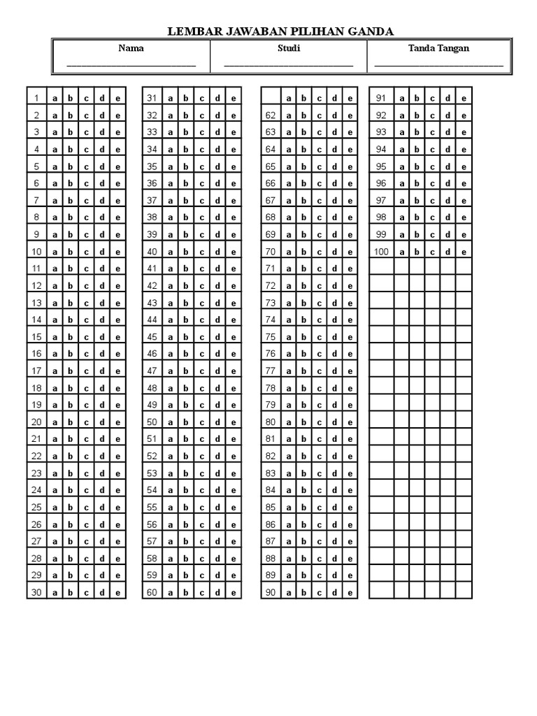 Contoh soal essay ms word beserta jawabannya. Keuntungan menggunakan lembar jawab sekolah di tempat saya bekerja sudah terbiasa menggunakan lembar jawab untuk melaksanakan uts/pts, uas/pas, ukk/pat. Detail contoh lembar jawaban pilihan ganda 50 soal pdf dapat kamu nikmati dengan cara klik link download dibawah dengan mudah tanpa iklan yang mengganggu. Download lembar jawaban ujian (ljk) komputer. Berikut ini adalah soal dan jawaban tentang badminton pilihan ganda kelas 9. Format lembar jawaban ini bisa diunduh dan disediakan oleh sekolah sekaligus melengkapi administrasi ujian sekolah. Download as doc, pdf, txt or read online from scribd. Contoh soal tentang karya ilmiah hadir dalam bentuk pilihan ganda. Pilih salah satu jawaban yang paling tepat dengan memberi tanda silang x pada lembar jawaban yang telah disediakan. Bentuk soalnya dibuat menjadi 2 kolom.